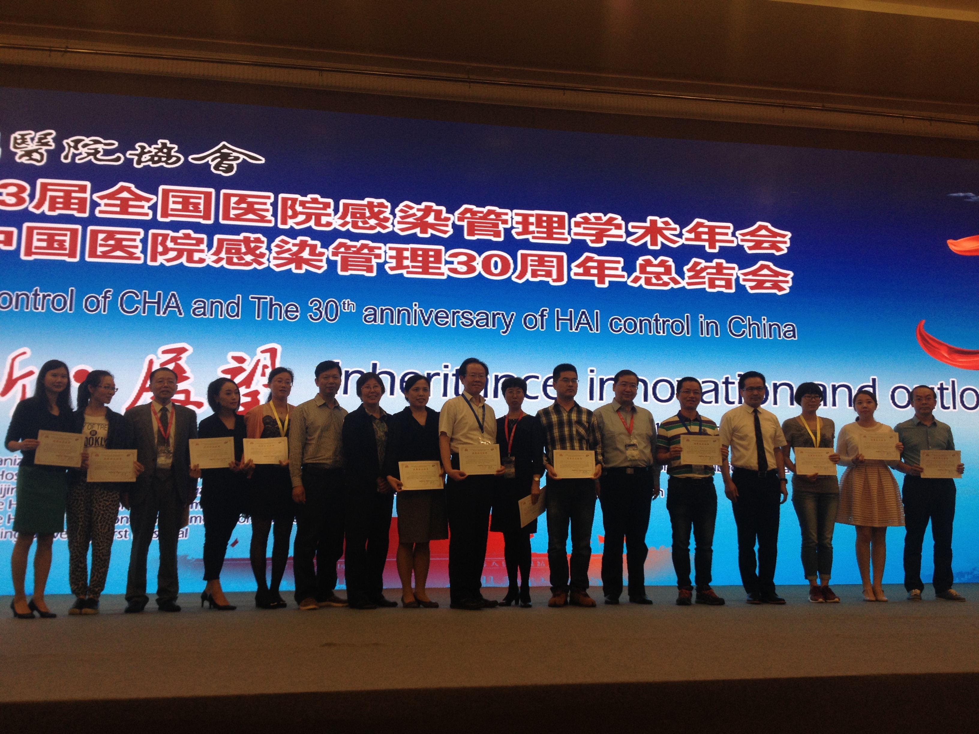 2016年中国医院协会第23届全国医院感染管理学术年会暨中国医院感染管理30年总结会上,我院院感科谢建忠医生荣获“中国医院感染管理30周年优秀青年工作者”称号,其论文荣获优秀论文二等奖,并在大会上进行交流。