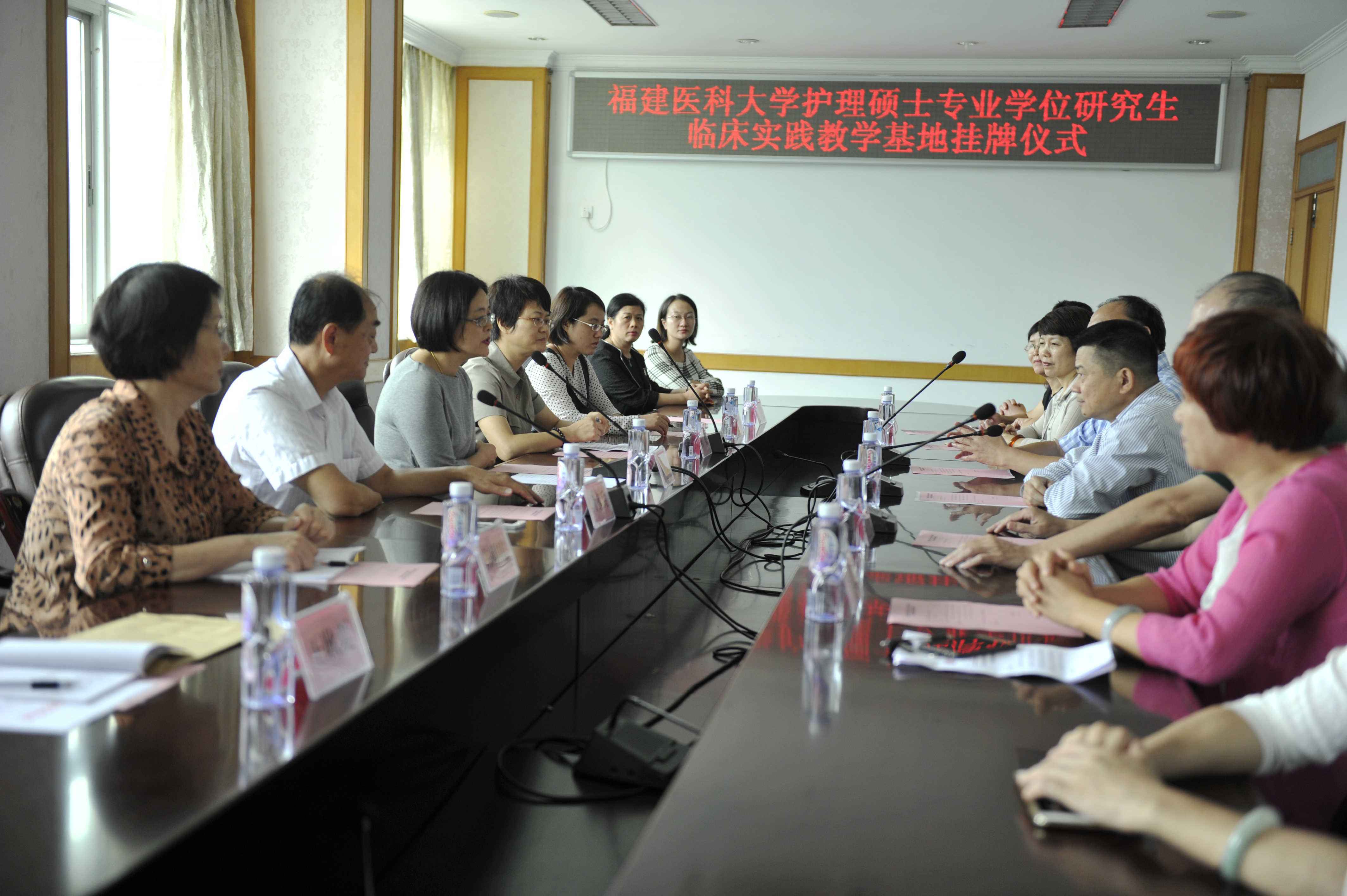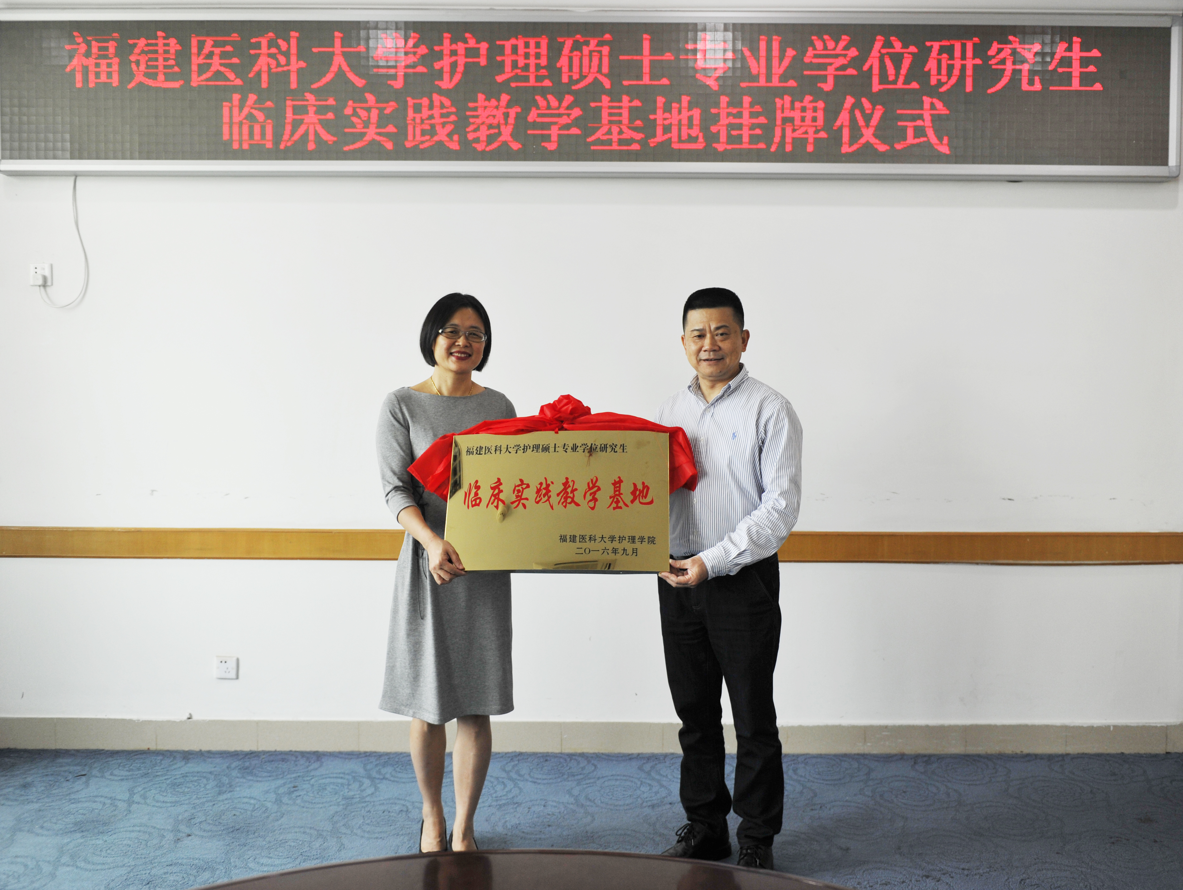10月17日,福建医科大学护理硕士专业学位研究生临床实践教学基地挂牌仪式在我院举行。福建医科大学护理学院党委书记黄赤兵教授主持授牌仪式,我院院长应敏刚教授、福建医大护理学院院长李红教授、福建医大研究生院党委书记陈媚教授出席并讲话。