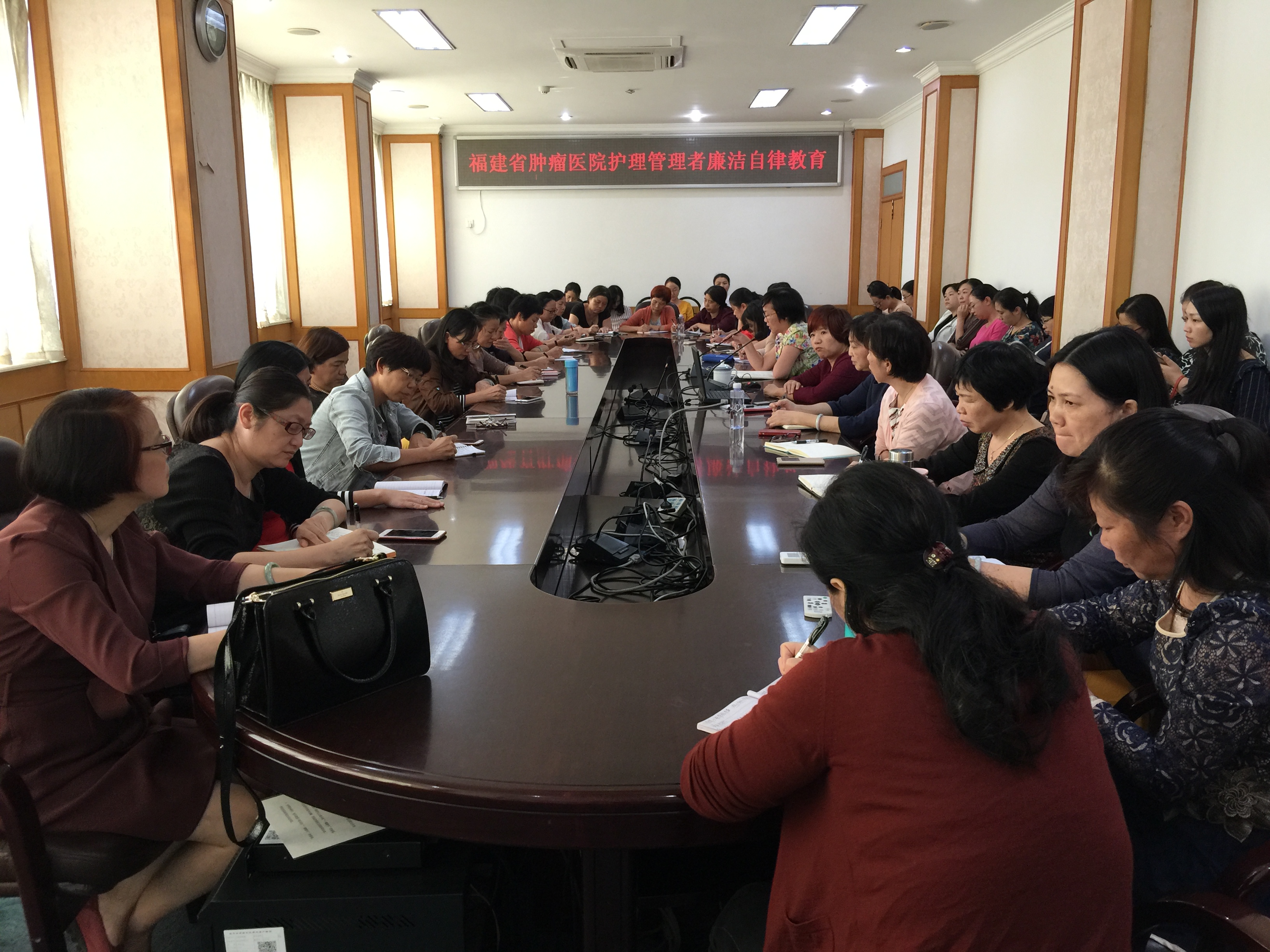 10月31日下午,我院护理部在科研楼十一层会议室组织护理管理者进行廉洁自律教育学习,全体护理管理人员50余人参加了学习。护理部主任骆惠玉担任主讲,传达《中国共产党廉洁自律准则》、《中国共产党纪律处分条例》及《福建省卫生计生委关于印发<福建省医疗机构专项整治“红包”和回扣工作方案>的通知》的文件精神。她要求全体护理管理者严格执行上级文件,护理管理者不可入“禁区”,不可触“高压线”,要“明规范、慎用权、廉从政、作表率”,始终做到“廉政纪律不可忘,腐败红线不可触,公仆之情不可移”,并要求传达到每一个护士。