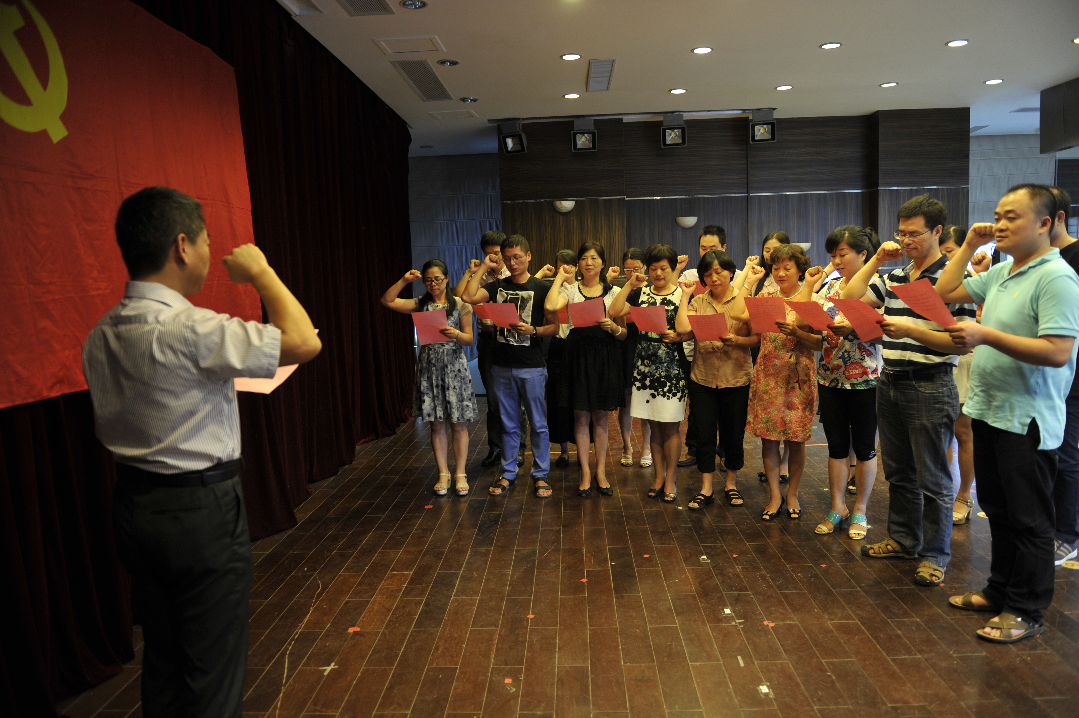 按照省卫计委的要求,院党委从2016年4月起扎实开展“两学一做”学习专题教育,制定了学习方案,成立了领导小组,已组织了6名支部书记及党务干部参与“党建微课”、10位支部书记讲党课、13次在职党员进社区活动。为深入贯彻“两学一做”,激发党员爱党爱国情怀,大会还专门设置了重温誓词环节。9名分别拥有30年、20年、10年党龄的老共产党员代表,在院党委组织委员、副院长蒋忠铭的带领下,同8名预备党员一起,面对党旗,郑重宣誓:“我志愿加入中国共产党,拥护党的纲领,遵守党的章程……”。庄严肃穆的重温誓词活动,让党员们再一次接受了心灵洗礼,从而牢记党的宗旨,鞭策和激励自己不断前行,为党旗增光,为党徽添彩。