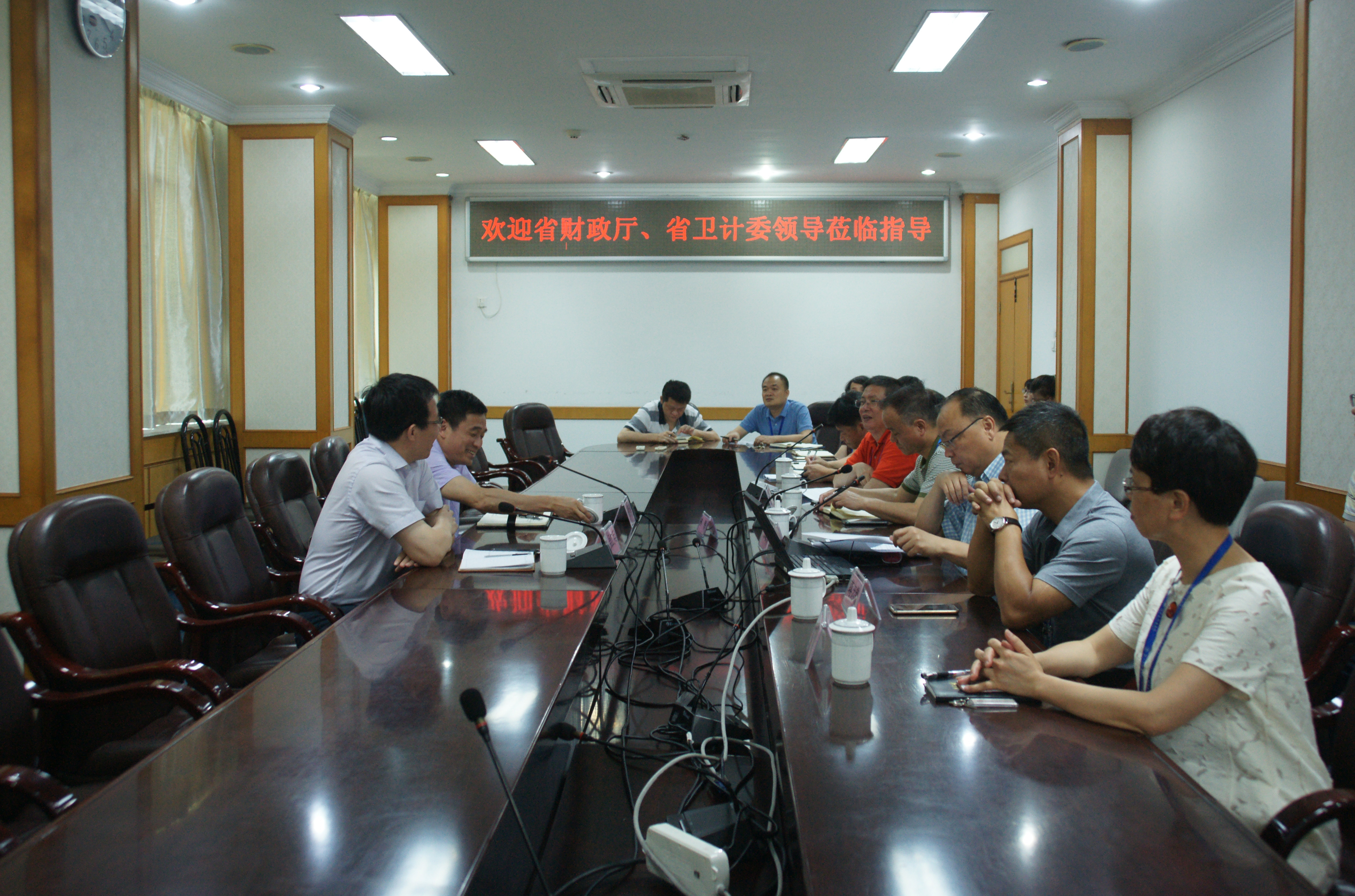 5月28日下午,省财政厅社会保障处陈爱清处长、省卫计委财务处吴红兵处长到我院调研。郑雄伟院长、蒋忠铭副院长、叶阿琴副书记、陈传本副院长以及相关职能科室负责人陪同调研。