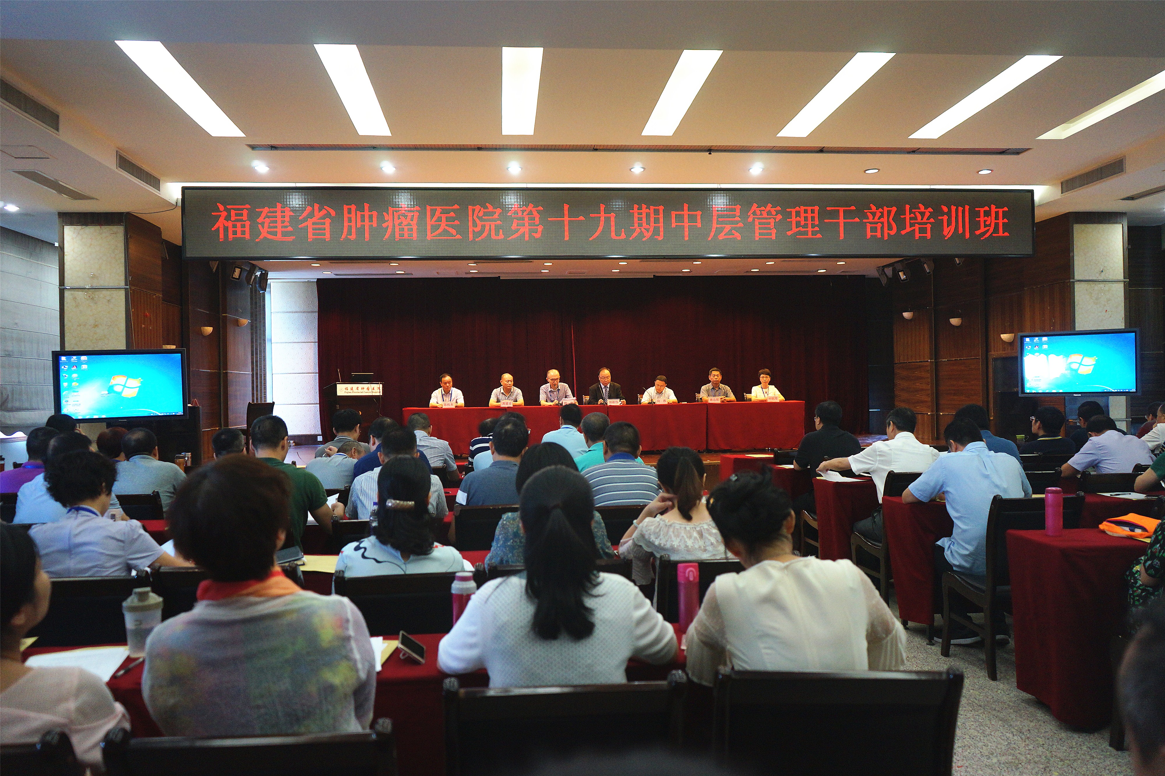 9月14日,我院第十九期中层管理干部培训班在影像楼6层会议室举行。开班式上,院党委书记、院长郑雄伟致开幕词,林伟副院长主持,院领导蒋忠铭、黄建甫、叶阿琴、陈传本及全院中层管理干部近150名参加了此次培训学习。