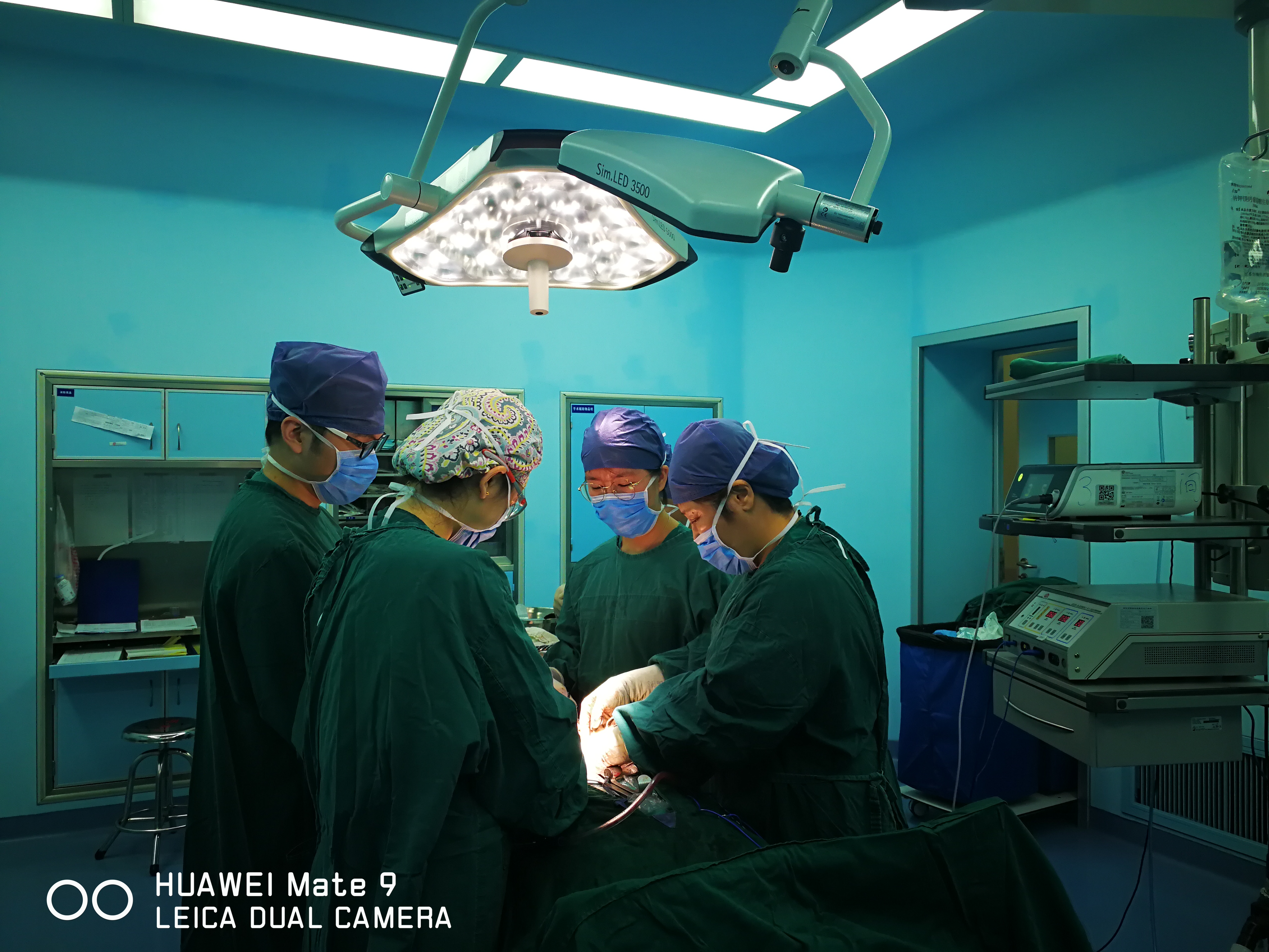 入院时,患者呈恶液质、贫血面容,谢榕主任、李桑副主任医师、陈潇医师详细为其做了检查,发现肿块巨大,上至剑突,下至耻骨联合,两侧至腋后线,同时发现合并有高血压、糖尿病。经过详细而充分的准备,主诊组决定为患者行手术治疗。因为手术风险巨大,加之经济困难,患者及家属一度打算放弃治疗。在十区医护人员帮助下, 10月24日,患者同意接受手术治疗。在谢榕主诊组医生、麻醉师和手术室护士的密切配合下,手术过程顺利,完整切除了整个肿瘤。肿瘤最大直径达41cm,重约6公斤,如刚出生的“巨孩儿”。