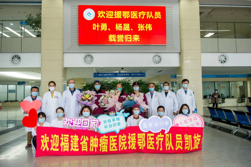 我院重症医学科副主任叶勇和杨晟、张伟三名医疗队员于2月11日闻令而动,赴湖北宜昌抗“疫”一线开展医疗支援工作,出色完成救治任务后,于3月23日从宜昌抵达福州进行集中休整。