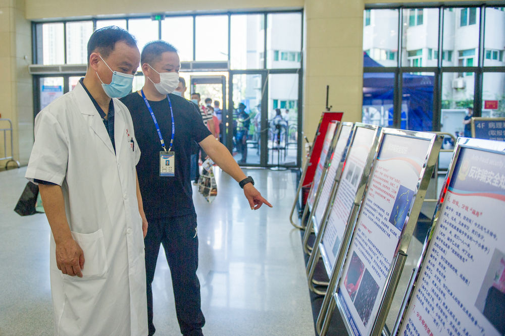 2、6月16日全院开展“安全咨询日”活动,共向医护职工、患者及家属群众等发放安全防范知识手册1100余册;在门急诊、住院部大厅等摆放安全生产月活动、消防安全、疫情防控、反恐怖防范、扫黑除恶、反诈骗等各类宣传展板20面;展示各类消防灭火救援设备、反恐防暴器材30余件;悬挂安全生产月宣传横幅2条。