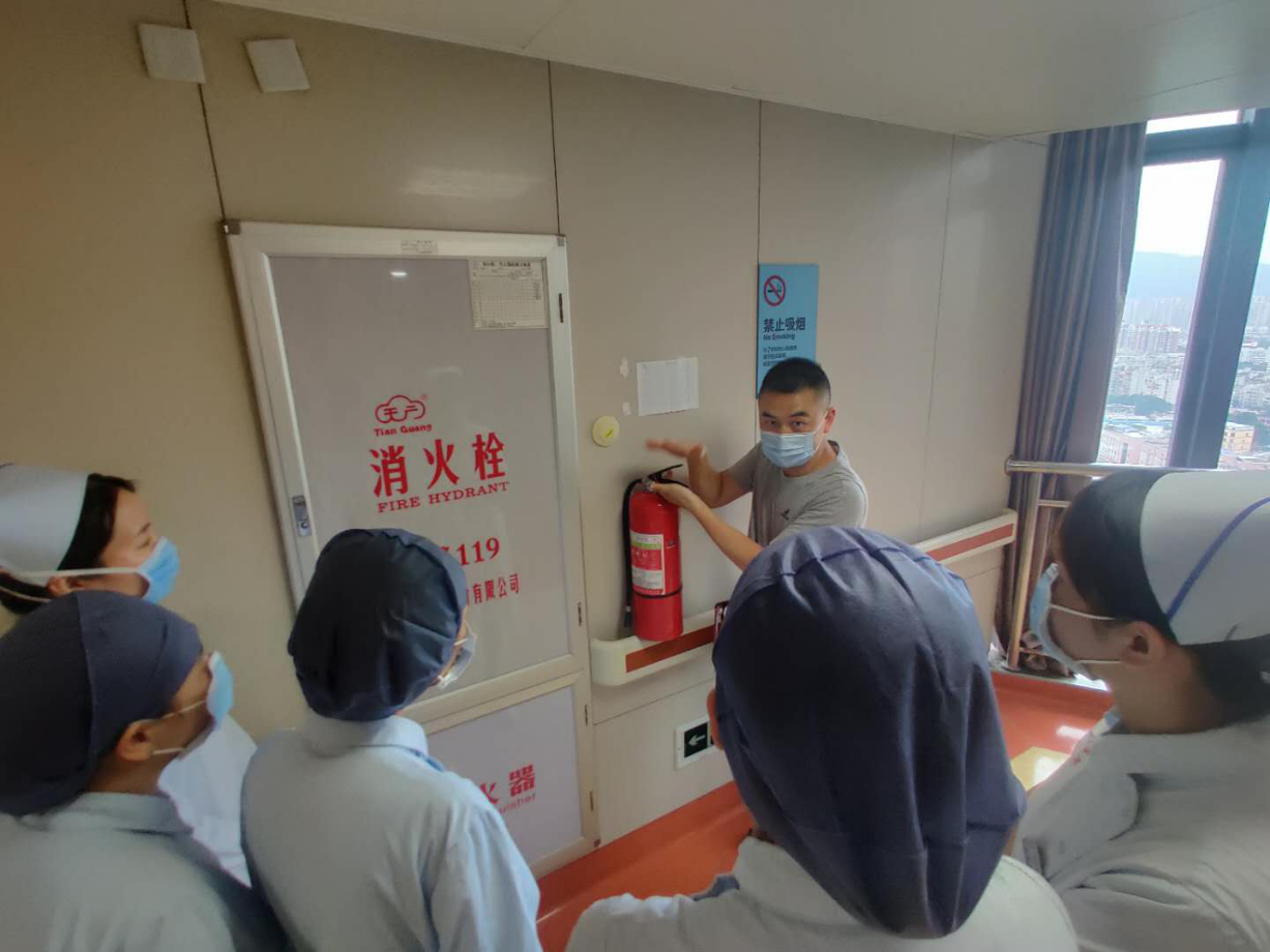 1、院保卫科等深入到各临床病区、门急诊等科室开展现场消防安全知识培训,6月份共开展培训7次,通过培训普及消防安全知识,进一步增强医护职工消防安全意识和“四懂四会”等消防应急处置能力。