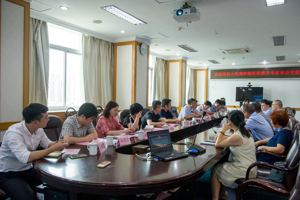 国科大附属肿瘤医院党委副书记、副院长程向东教授及我院副院长孙阳教授、吴君心教授、杨春康教授、陈刚教授等就肿瘤专科医院发展的共性及如何推动医、教、研、防四位一体发展等经验做法展开了深度交流沟通。