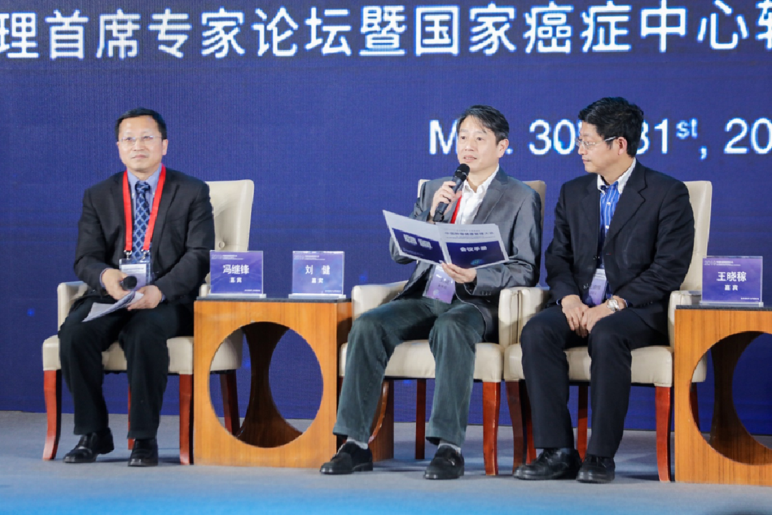 资料图片:刘健主任(中)参加2019年中国肿瘤健康管理大会现场