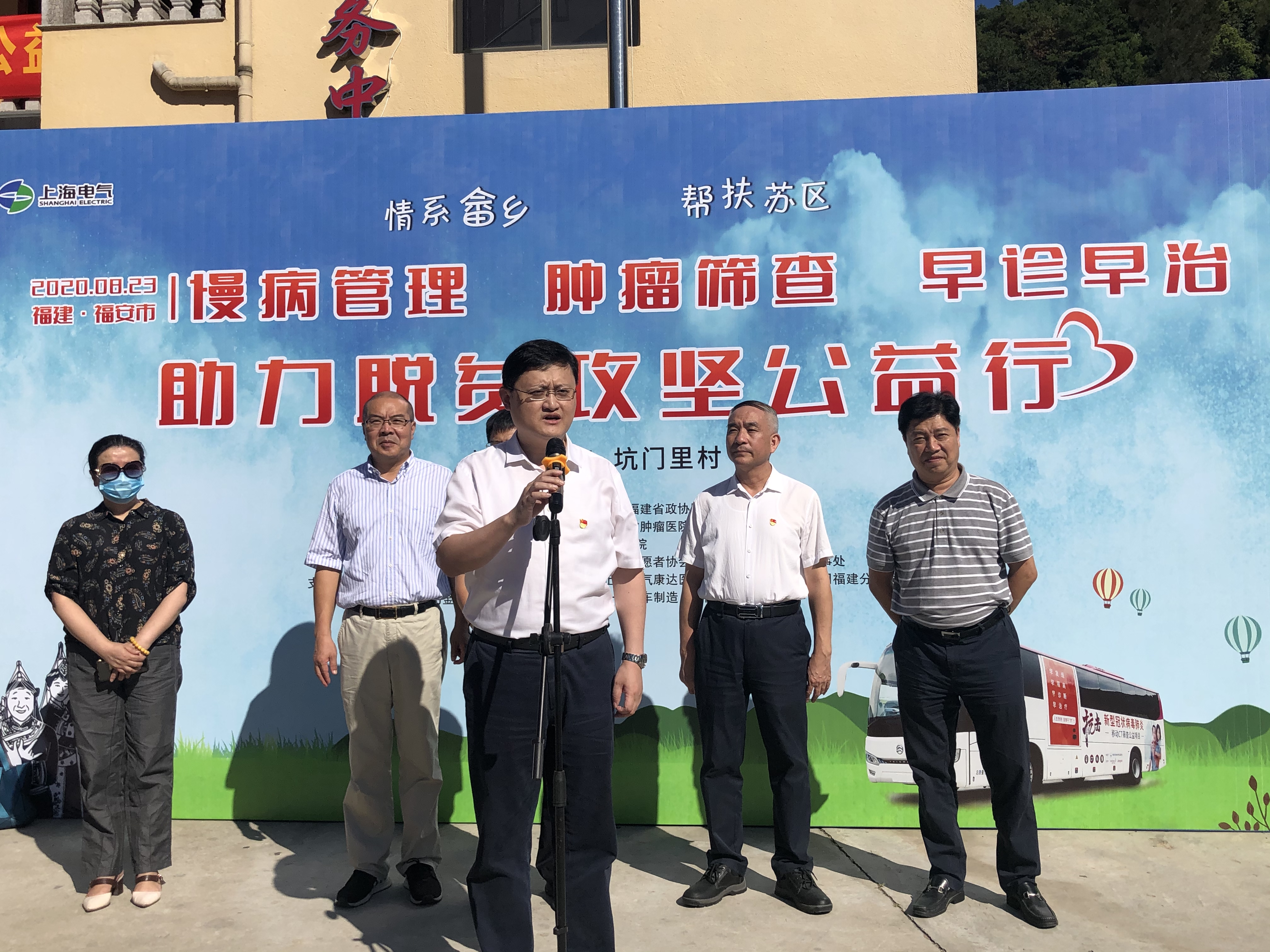 8月23日上午,由省政协教科卫体委员会、省政协民族和宗教委员会指导,省肿瘤防治办公室、省肿瘤医院、省抗癌协会主办,闽东医院承办,福安市政协、福建卫生报、省医务志愿者协会、福安市政协教科卫体专委会、罗江街道党工委、办事处等单位共同协办的“情系畲乡 帮扶苏区2020年慢病管理,肿瘤筛查,早诊早治助力脱贫攻坚公益行”活动在宁德福安市坑门里村举行。