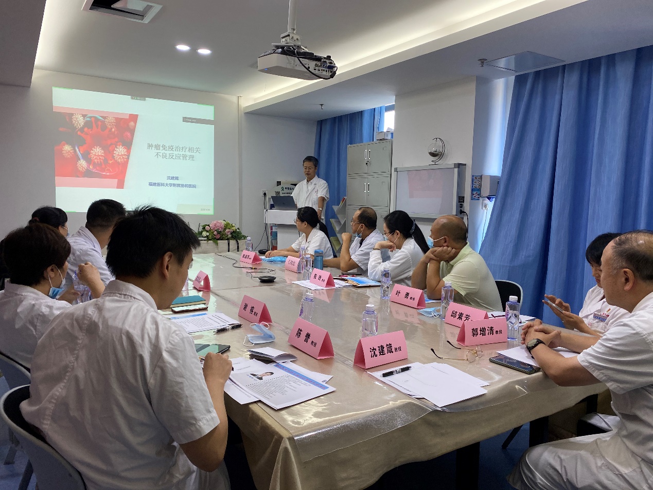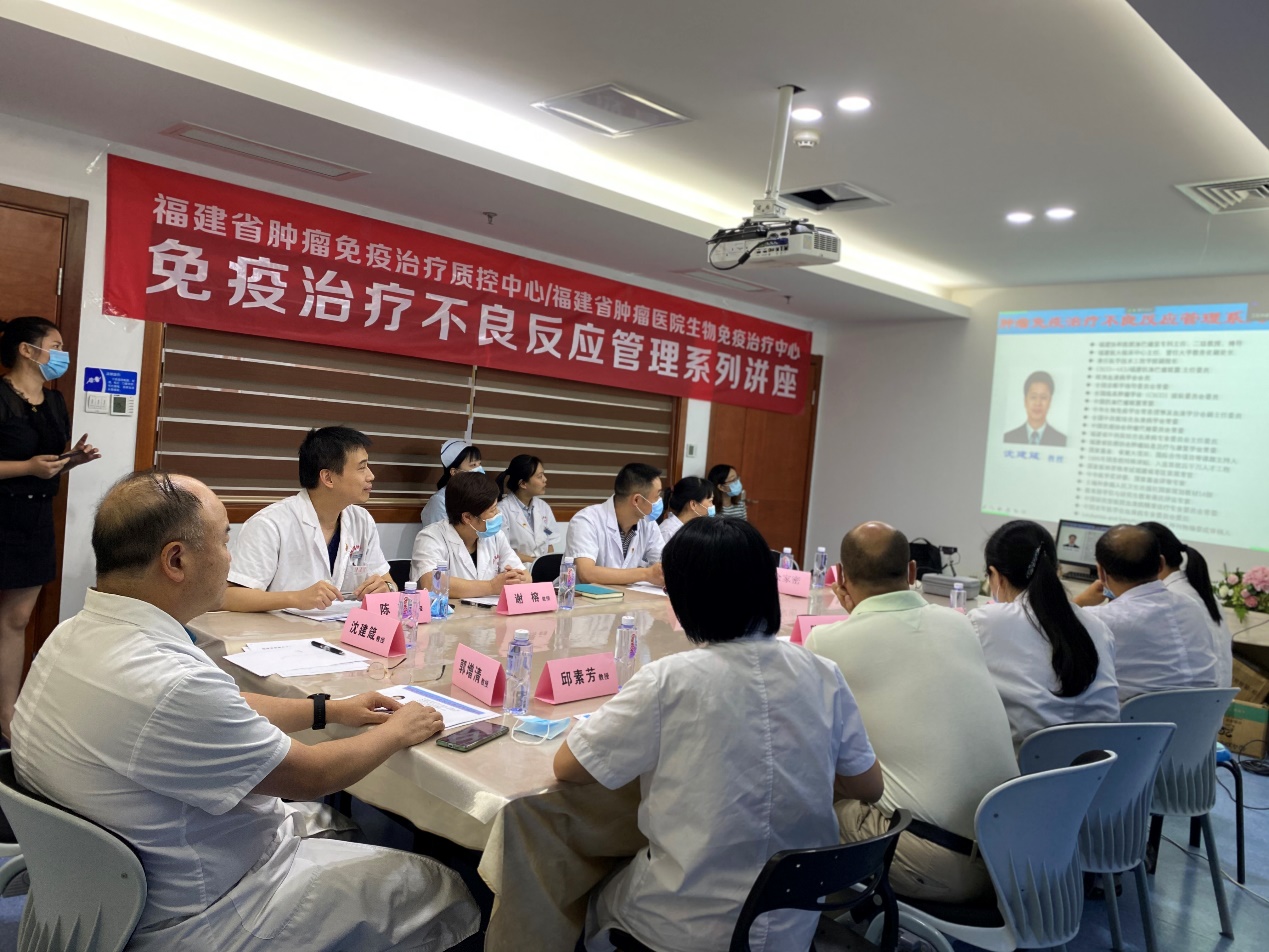 2020年8月20日,由福建省肿瘤免疫治疗质控中心、福建省肿瘤医院生物免疫治疗中心主办的“第六期肿瘤免疫治疗不良反应管理系列讲座”顺利举行。此次会议延续采用线上线下同步进行方式进行,质控中心成员单位线上观看以及互动形式,秉承多学科交流互助精神,旨在共同搭建肿瘤免疫治疗相关不良反应多学科协作组,致力于更好地保障医疗安全、提高医疗质量、更好地让肿瘤患者从免疫治疗中获益。 福建省肿瘤医院生物免疫治疗中心 福建省唯一一个集临床科室、重点实验室结合的以临床免疫治疗为切入点的临床科研单体,同时是福建省卫健委肿瘤免疫治疗质控中心挂靠单位,主要从事肿瘤免疫临床治疗,并积极开展各种新型细胞治疗(新抗原疫苗、CAR-T、TCR-T等)临床研究以及依托临床及强大的科研平台,积极探索各种免疫靶标分子以及多策略联合治疗手段。在黑色素瘤,头颈部肿瘤,泌尿系统肿瘤以及消化道肿瘤综合治疗方面有丰富的临床经验。中心负责人是福建省肿瘤医院院长、党委副书记陈传本教授,团队由临床专家、转化医学重点实验室的教授以及病理科、分子病理的专家构成。多年来,该中心不断推动免疫治疗的临床研究、转化基础研究以及各种临床新技术申报,同时积极和国内各大专科医院及顶级高校实验室展开合作交流,并在福建省内推动免疫治疗规范化的普及推广。