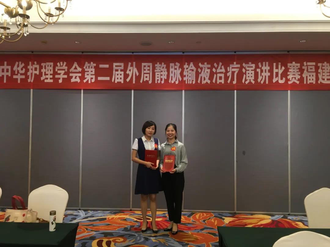 近日,在福建省护理学会第二届外周静脉输液治疗护理演讲比赛上,我院第二日间治疗室余圣护士和十二区王珠清护士分别荣获一等奖和三等奖的好成绩。