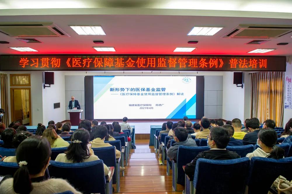 4月9日下午,我院在学术厅举行《医疗保障基金使用监督管理条例》专题普法培训会。会议由林伟副院长主持,省医疗保障局稽查处处长陈德广应邀作《条例》解读。临床医技科室负责人、护士长、医保联络员、各级临床医师及相关职能科室人员参加了培训。