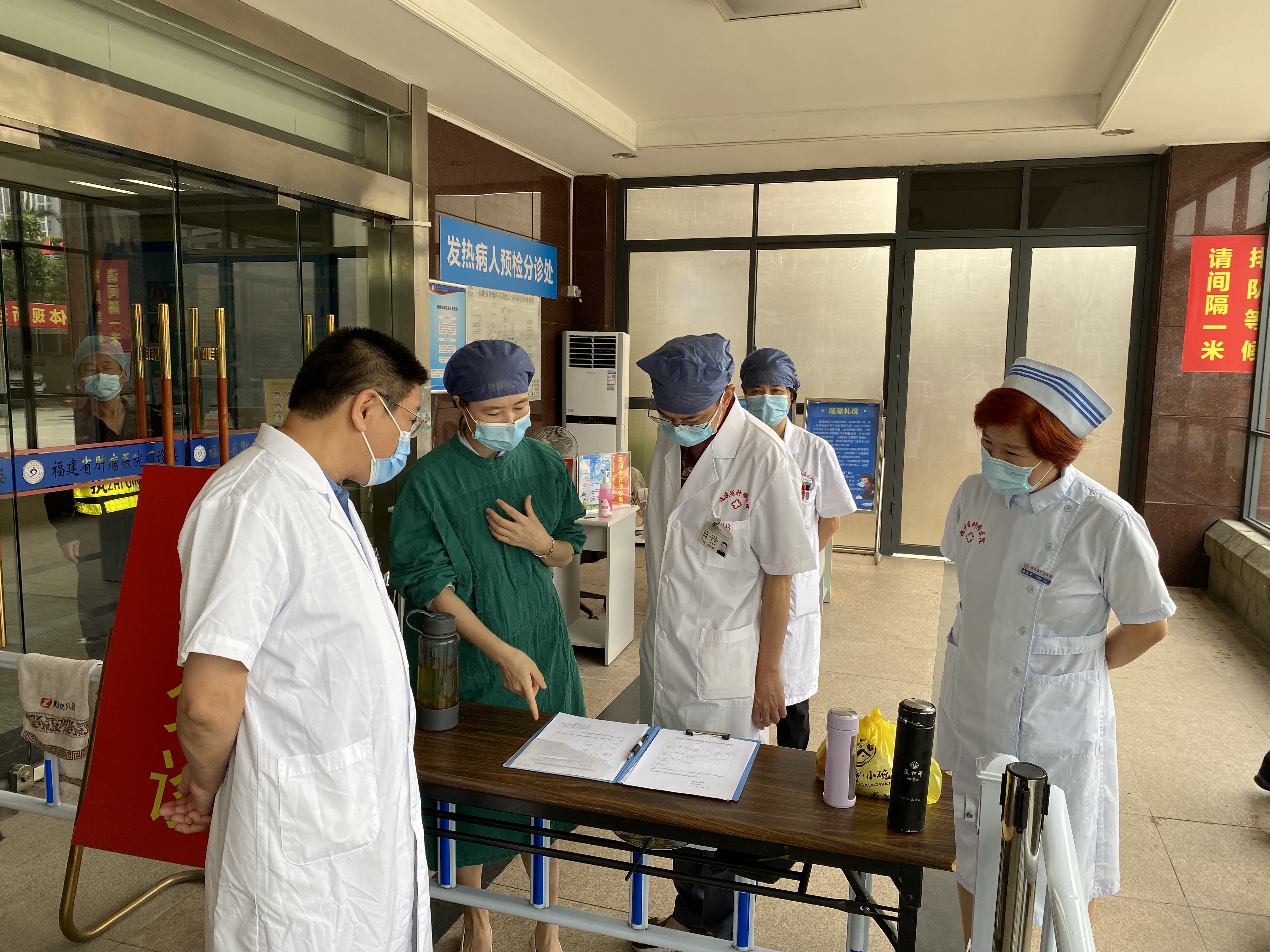 6月25日上午,医务科组织护理部、院感科及相关人员组成督导组对医院疫情防控重点部门和环节进行专项自查,督促疫情防控各项措施落实落细。 督导组实地查看了医院各级卡点、预检分诊、门诊大厅、核酸检测集中采样点等重点防控环节,详细了解了体温监测、健康码核验、预检分诊及院内人员口罩佩戴情况,并就疫情防控工作开展情况与相关部门进行了现场交流,提醒各部门要认真严格落实各项疫情防控措施,尤其要严格执行预检分诊制度和首诊负责制,做好医患双方个人防护,对检查发现的问题现场提出指导意见督促整改。