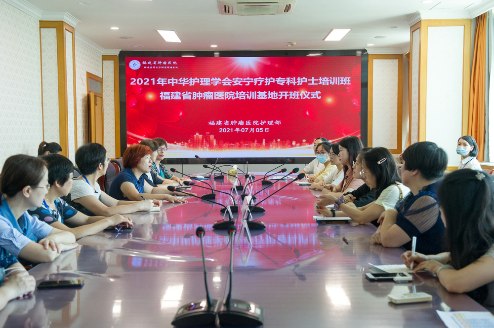 7月5日上午,中华护理学会安宁疗护专科护士培训班福建省肿瘤医院临床教学基地开班仪式在科研楼11层会议室举行。此次是我院获中华护理学会安宁疗护专科护士临床教学基地评审以来接收的第一批学员。来自全国6位护理骨干,我院护理部吴美华副主任、护理部督导及安宁疗护教学病房的护士长及带教老师们参加开班式。