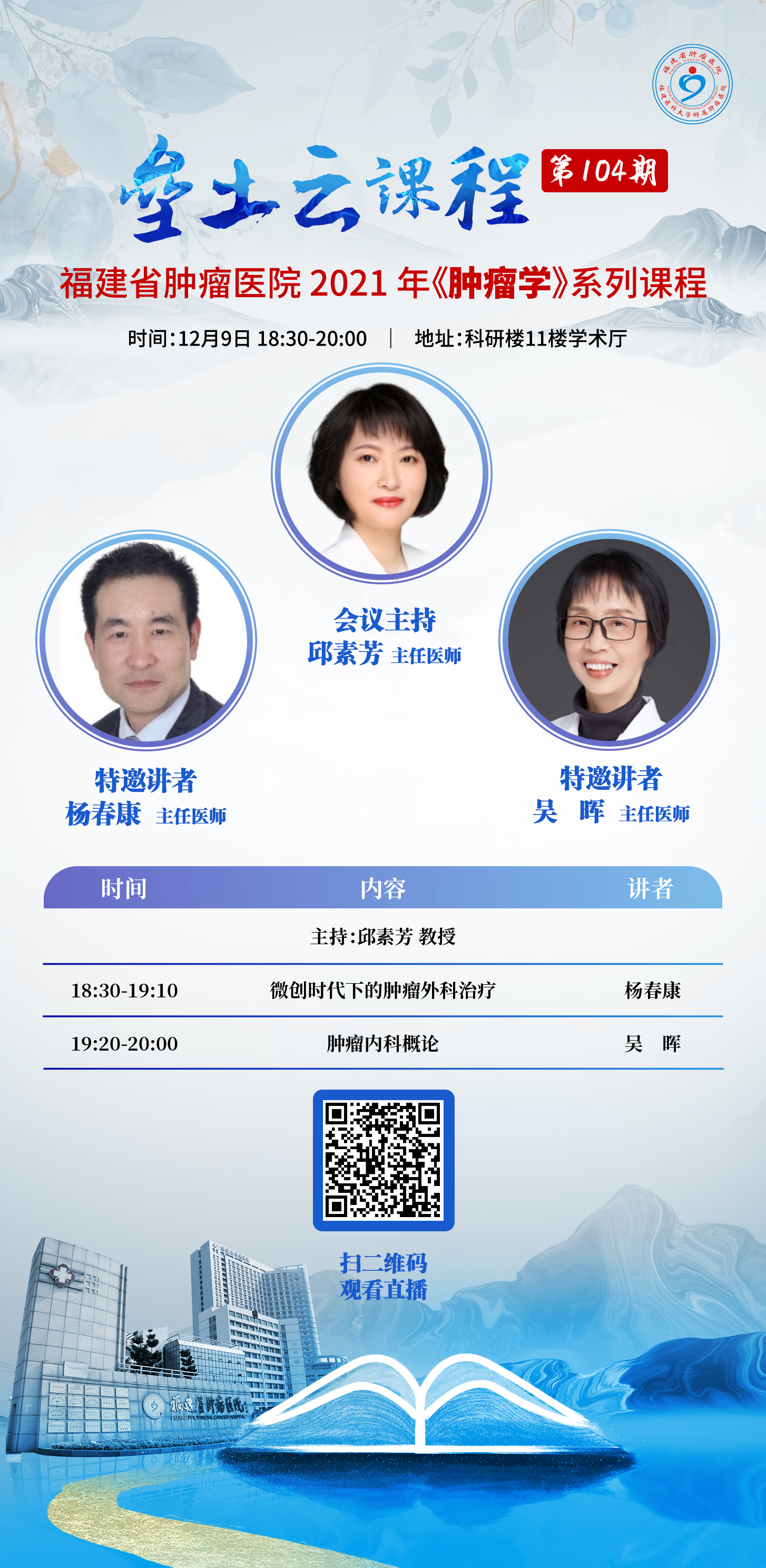 第104期垒土沙龙即《肿瘤学》垒土云课程我们有幸邀请到两位授课专家,一位是来自福建省肿瘤医院胃肠外科的杨春康主任为大家讲授《微创时代下的肿瘤外科治疗》。微创时代,不仅是外科的手术切口“大”或“小”,更是大数据时代数字化、信息化的体现。当前微创时代科学技术的发展日新月异,腹腔镜、内镜、介入等各种技术方法及相关治疗的方式模式不断涌现。与此同时,肿瘤外科和微创外科并肩而行,相互交叉相互依赖。肿瘤综合治疗通过缩小癌灶,为带来微创外科更大的发挥空间,从而更大程度的保护患者器官功能,提高其生活质量;高新的微创外科助于肿瘤外科实现精细化,减小创伤。同时,二者又相互促进和推动。肿瘤外科复杂、高难度的手术促进了微创外科的技术成熟,早期癌的微创技术和RCT研究结果也向肿瘤外科提出了更高的要求。杨春康主任将为我们介绍微创时代下肿瘤外科治疗的现状及展望,相信通过杨教授的讲解,我们将会对肿瘤的微创外科治疗有更加深入的理解。