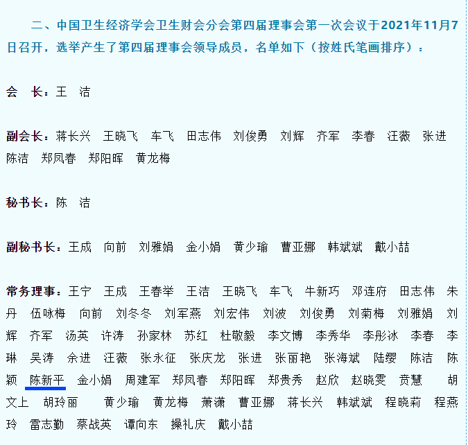 中国卫生经济学会卫生财会分会成立于2006年,是全国唯一的卫生财会学术团体。此次我院财务科科长陈新平当选为常务理事,体现了我院财会管理工作在省内外卫生财会领域的影响力。